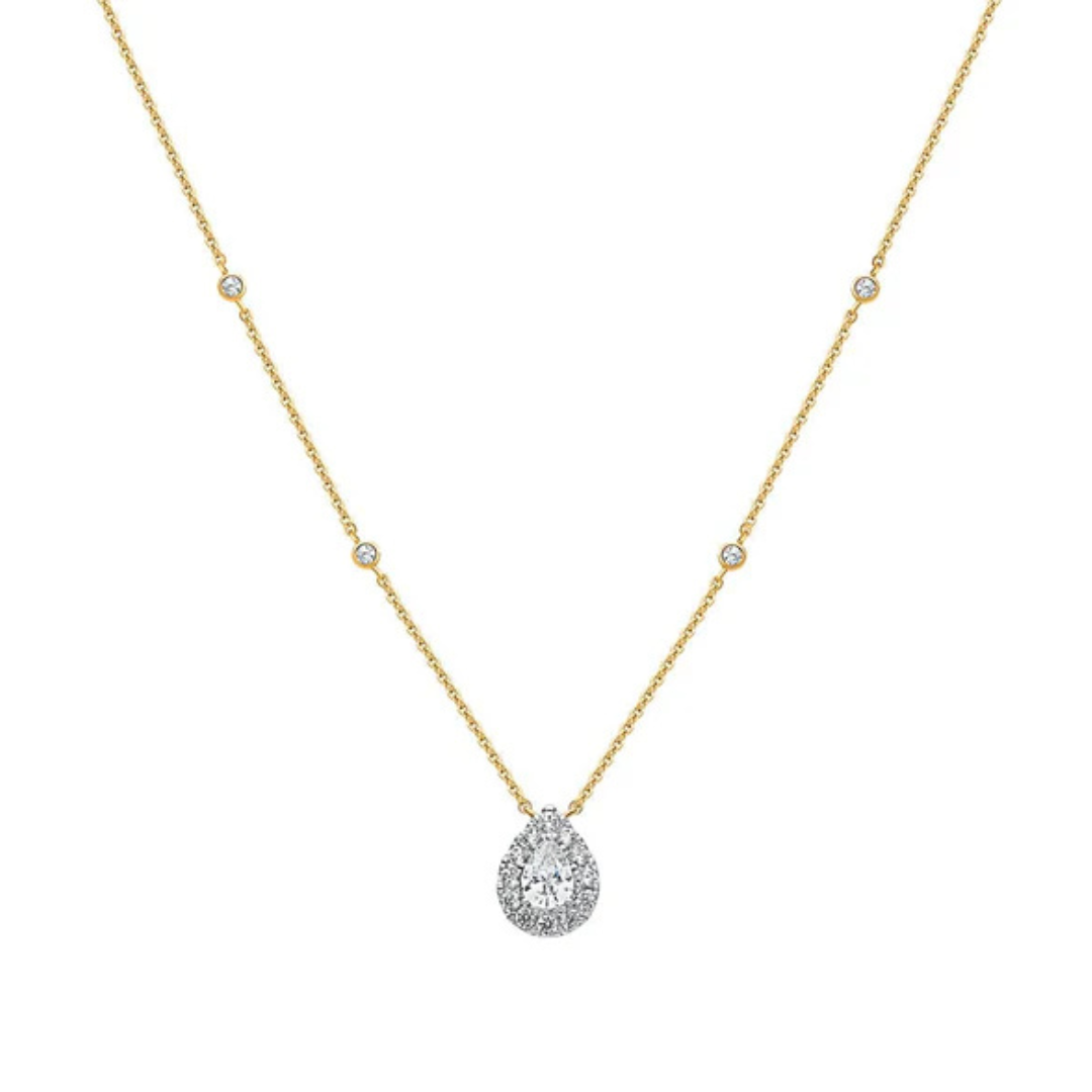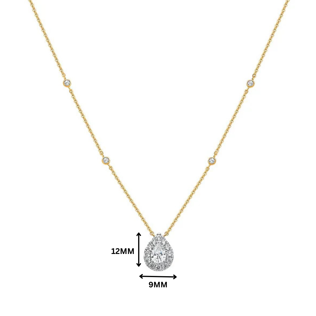 The Eira Pear Halo Necklace captures sophistication and grace in every detail. Featuring a pear-shaped moissanite center stone surrounded by a halo of brilliant moissanites, it’s a celebration of sparkle and balance. Handcrafted in 925 sterling silver, this piece offers timeless beauty, perfect for weddings, date nights, or gifting moments that call for elegance and luxury.