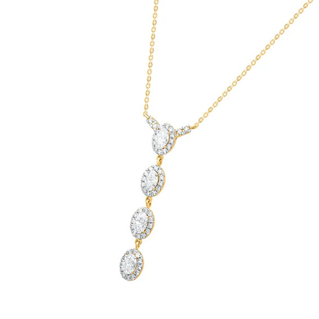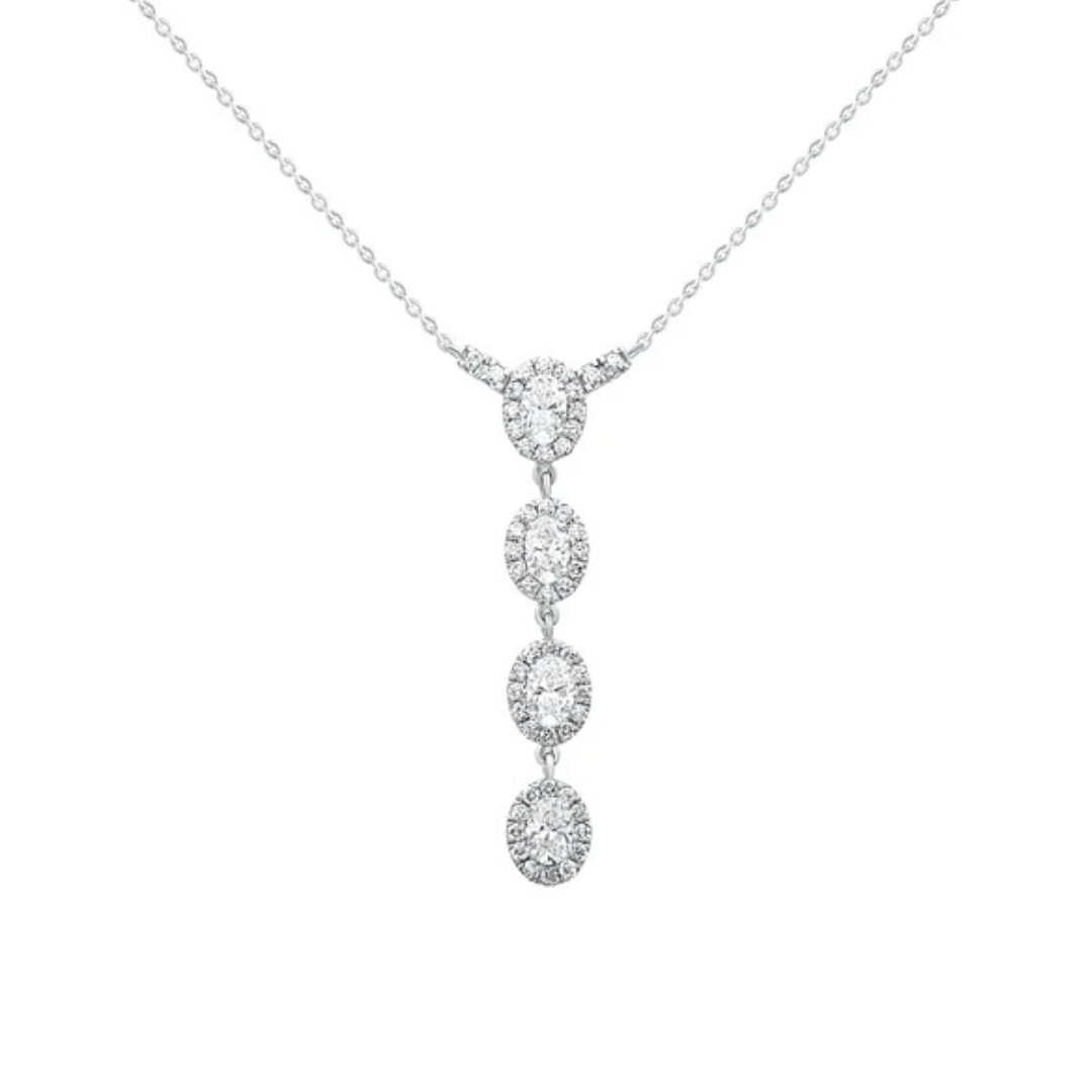 The Lumia Oval Halo Necklace captures the essence of modern fine jewelry with four luminous oval-cut moissanite stones framed by delicate halos. Handcrafted in 925 sterling silver, its graceful dangle design radiates brilliance and sophistication. Perfect for special occasions or everyday luxury jewelry, it adds timeless sparkle to every neckline.