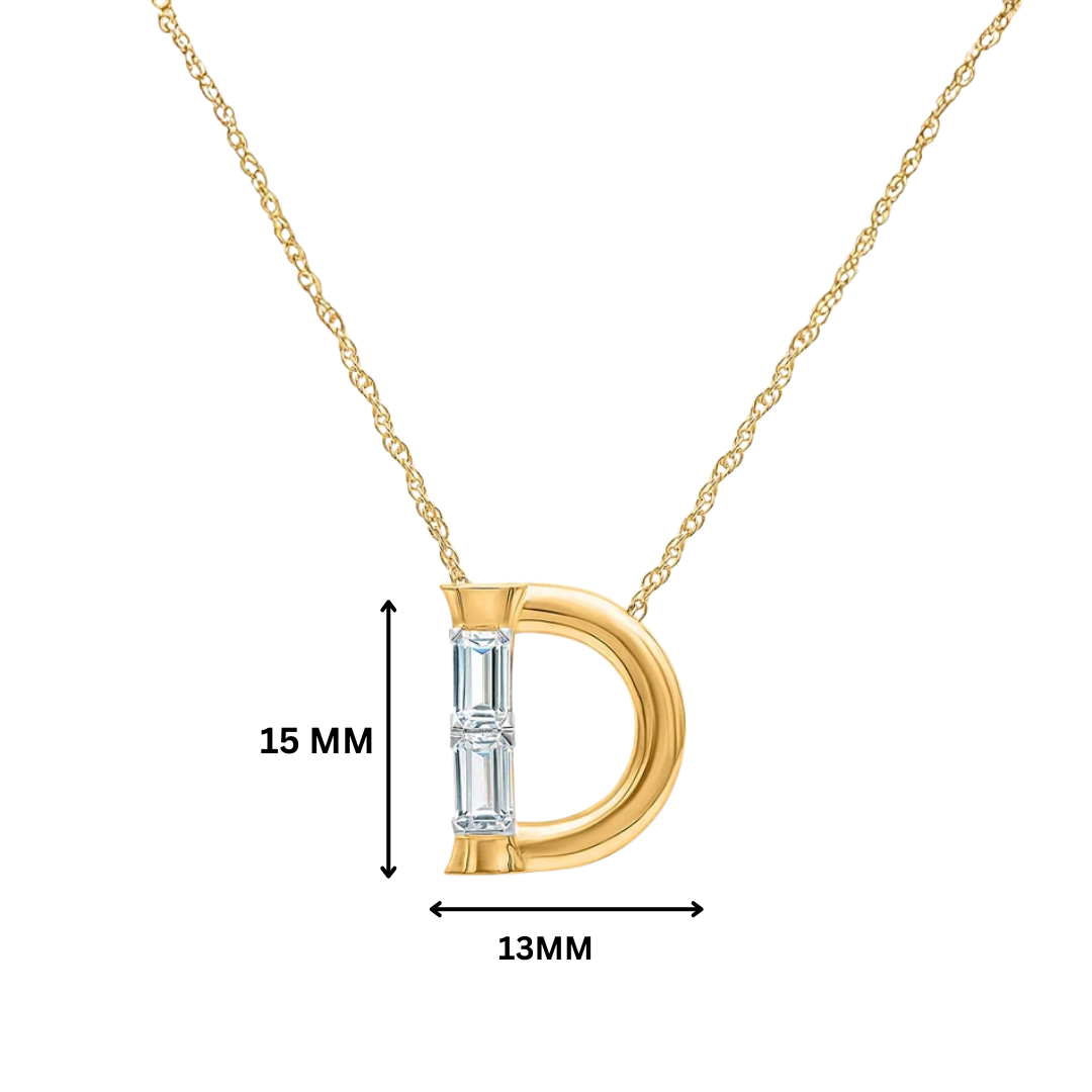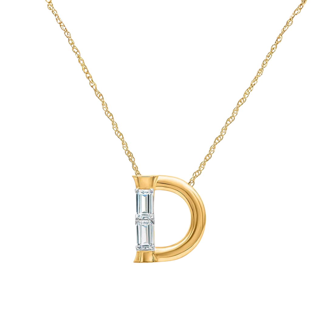 The Diva Necklace features a letter D pendant crafted in 925 sterling silver, detailed with radiant moissanite accents. A blend of boldness and elegance, it’s perfect for making your style personal. Available in white and yellow plating.