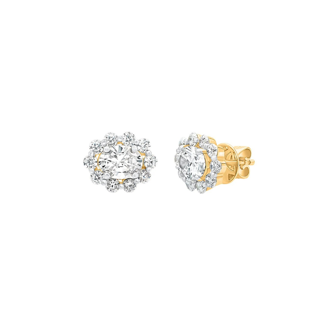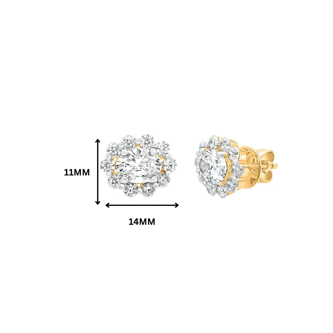 The Isla Oval Halo Studs capture timeless sophistication with a brilliant oval-cut moissanite center surrounded by a halo of round stones. Crafted in 925 sterling silver, these earrings exude glamour and elegance, making them perfect for weddings, special events, or daily sparkle. Available in white and yellow plating.