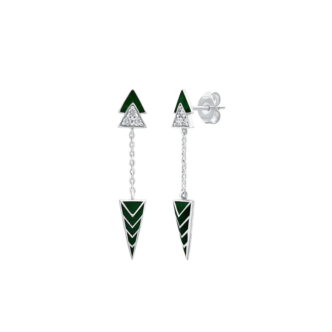 Add a splash of color with the Verdant Enamel Earrings, designed with smooth green enamel detailing on elegant sterling silver drops. These modern dangle earrings combine minimalism and style, perfect for everyday jewelry or subtle evening sophistication. A perfect match with the Verdant Enamel Necklace, completing your coordinated look with grace and charm.
