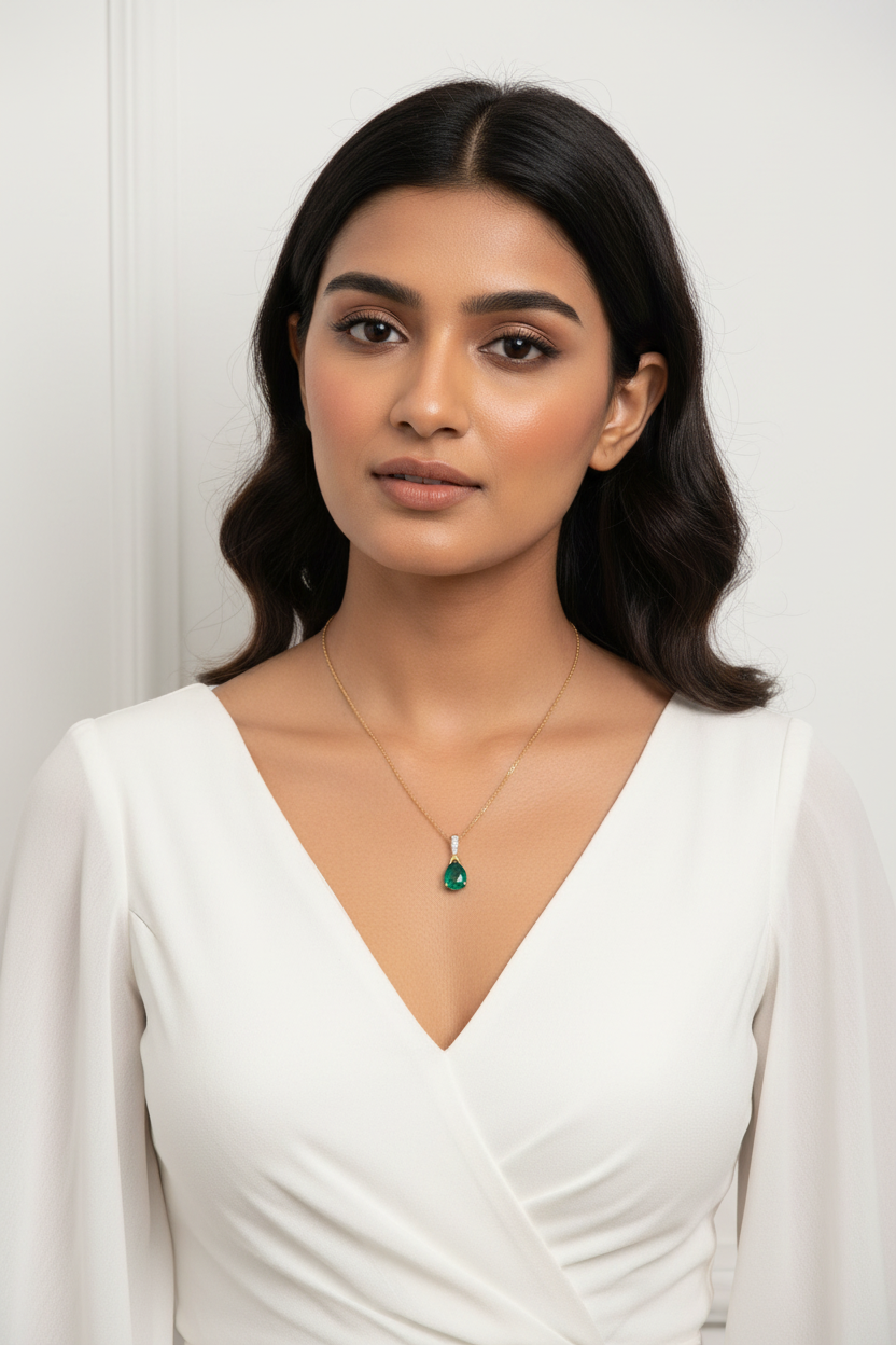 Chic and sultry with a splash of color — the Emerald Fizz Pendant is a statement in modern fine jewelry. Featuring a deep green pear-cut gemstone set in a sleek sterling silver bale, this pendant adds vibrant sophistication to any neckline. Perfect for layering or wearing solo, it captures the essence of fashion jewelry for women with a bold yet timeless twist. Add this piece to your silver jewelry collection for a look that blends elegance, color, and confidence.