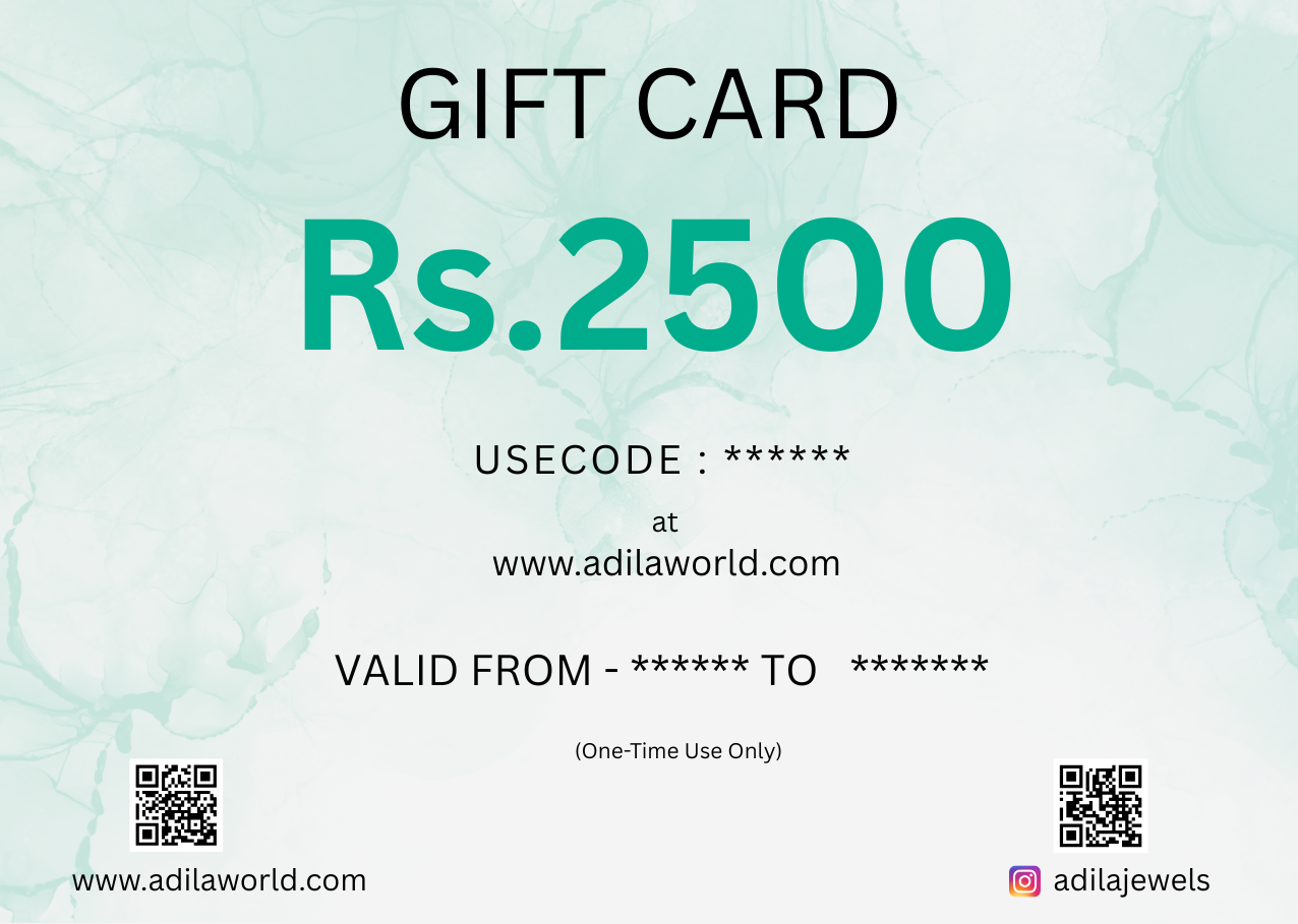 Looking for the perfect gift? Give the gift of choice with an Adila Gift Card! Whether for a birthday, anniversary or just because, our gift cards are the perfect way to show you care. Redeemable for our exquisite jewelry collection, including rings, earrings, necklaces, and bracelets, an Adila Gift Card allows the recipient to choose their favorite piece from our exclusive designs.
