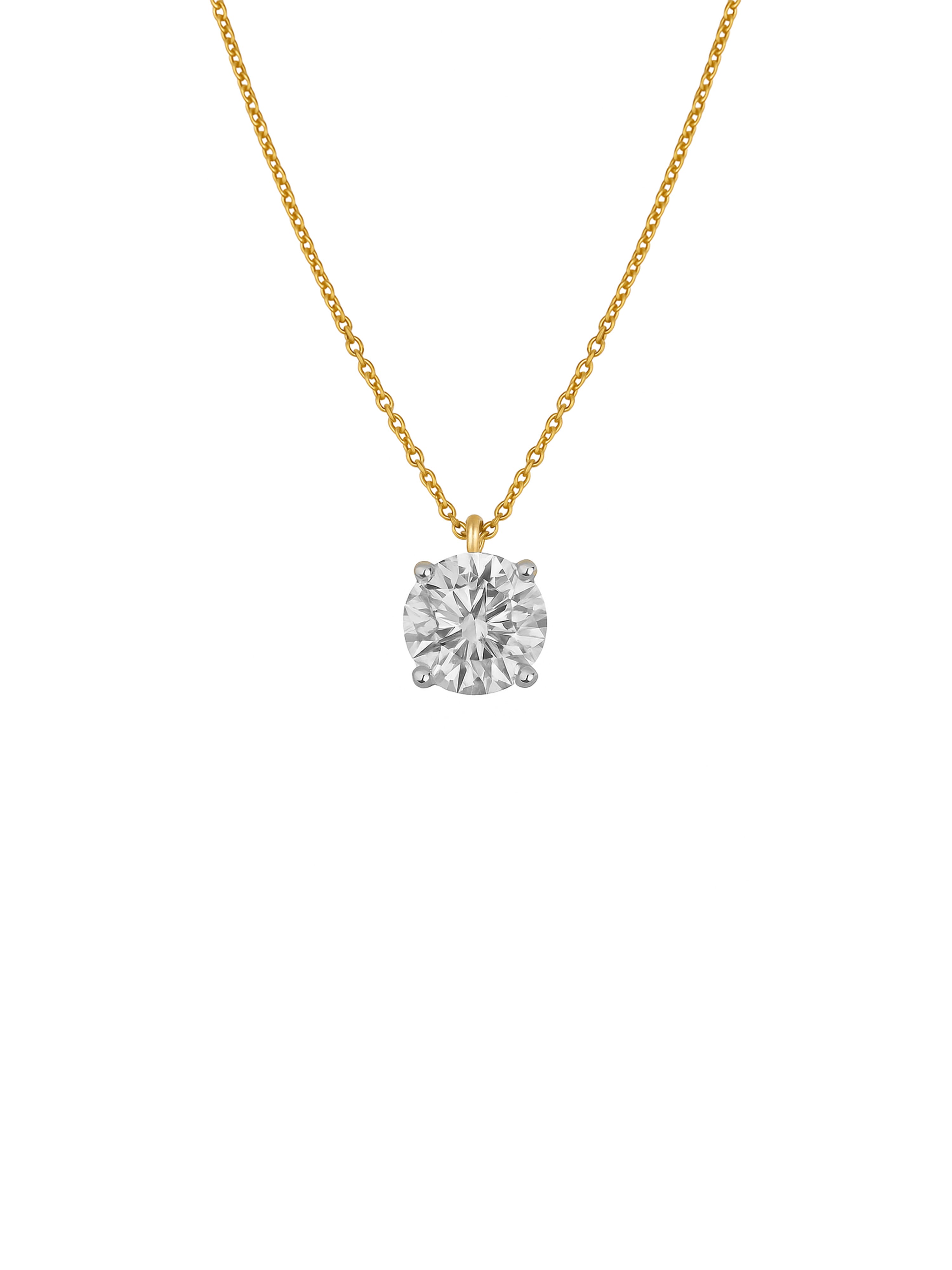 The Tara Necklace showcases a 3/4 carat moissanite solitaire, masterfully set in a sleek 925 sterling silver design. A perfect embodiment of timeless beauty, this moissanite pendant adds radiant brilliance to everyday elegance or formal attire. Available in white and yellow plating.