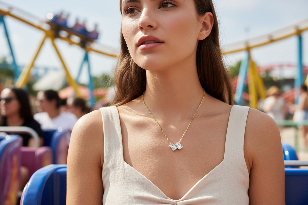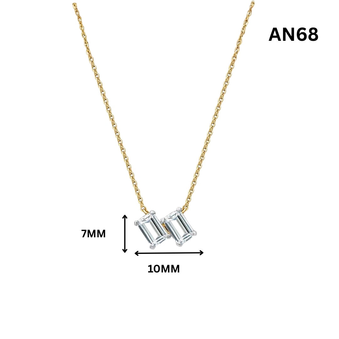 The Siya Duo Necklace is a striking piece featuring two emerald-cut moissanite stones set side by side on a sleek 925 sterling silver chain. This modern dual-stone design symbolizes balance and connection, making it an elegant gift or a personal keepsake. The step-cut moissanites create exceptional brilliance, blending timeless sophistication with contemporary flair. Perfect for both minimal and statement looks.
