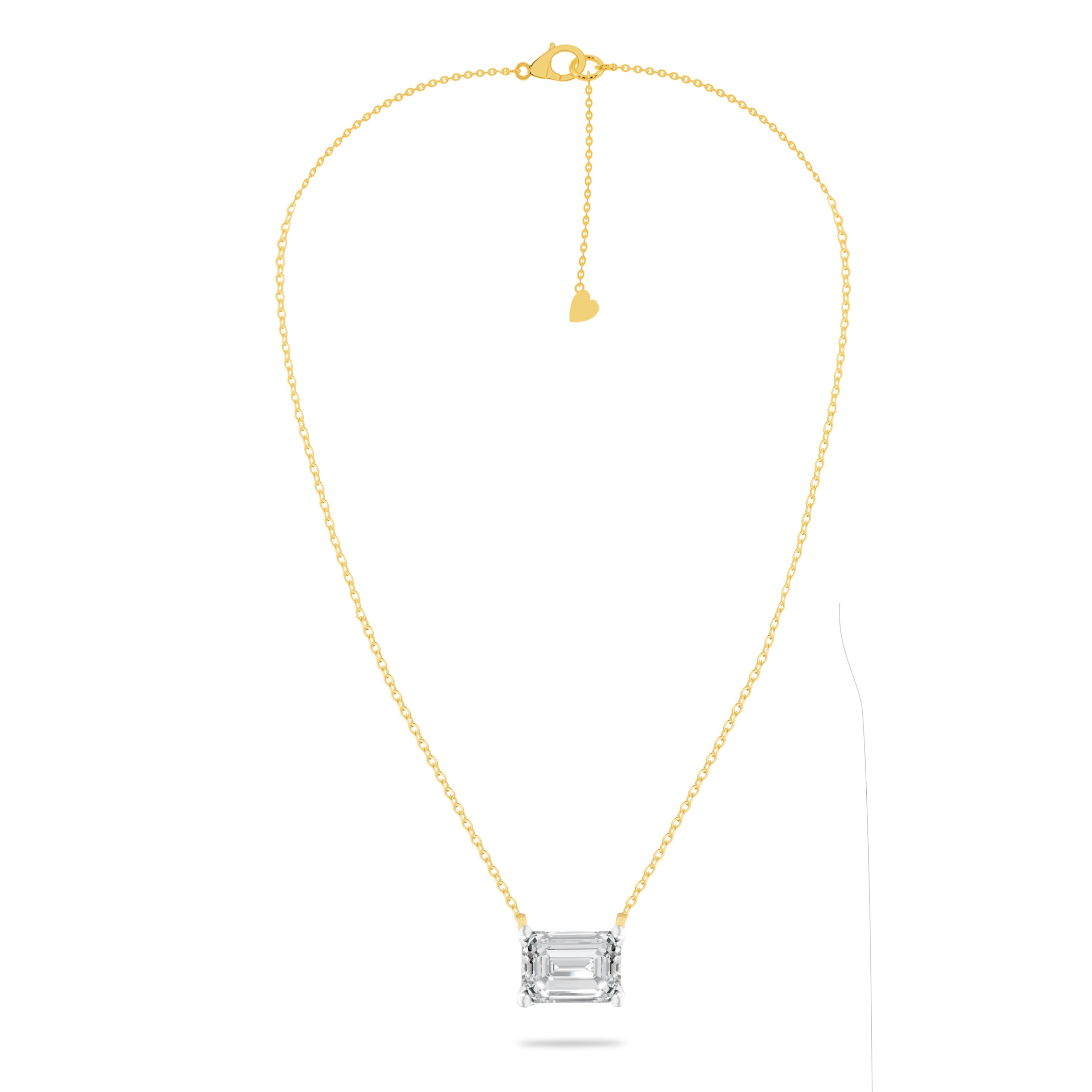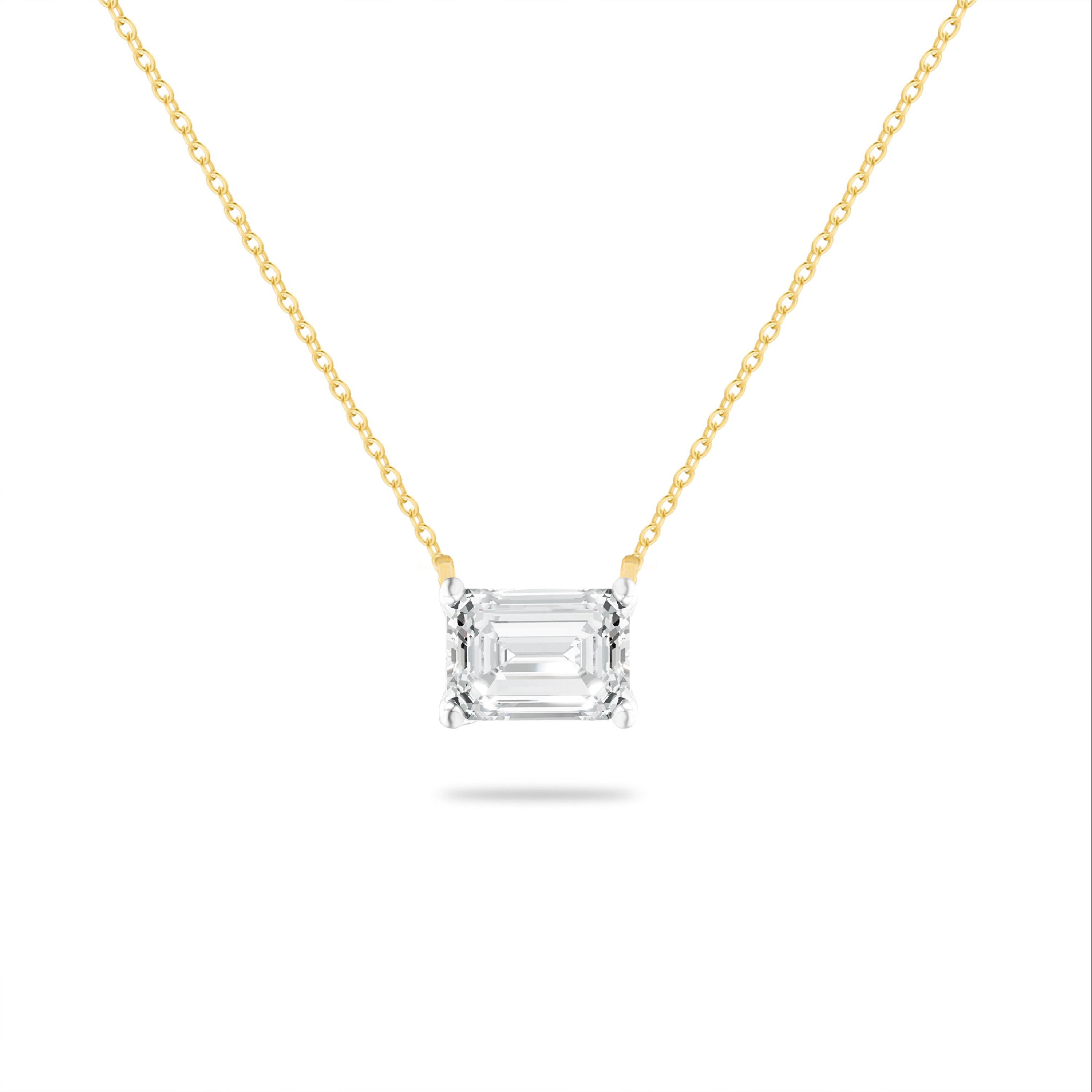 The Alia Necklace features a 1.00ct emerald-cut solitaire that captures light with every movement. Set in sterling silver and suspended from a fine chain, this classic piece adds refined sophistication to both daily wear and evening looks—a modern essential for every jewelry lover. Available 925 sterling Silver in White and Yellow Plating.